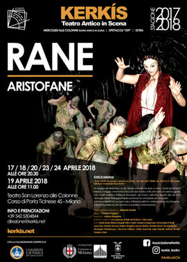 Con Rane Aristofane affronta la questione cruciale del ruolo politico della cultura e del teatro nella società, e lo fa con comicità e leggerezza, attraverso una metateatralità spontanea e vibrante. Il testo, ricco di tematiche attualissime, offre allo spettatore spunti di riflessione e solleva, oggi come allora, le medesime domande. Kerkís. Teatro Antico In Scena raccoglie la sfida proponendo una messinscena della commedia che diverte e sensibilizza e, senza snaturare Aristofane, riconosce in un grande dramma classico la trama del nostro stesso tessuto sociale.